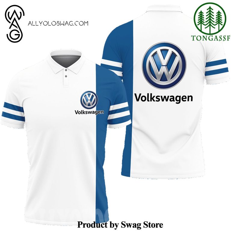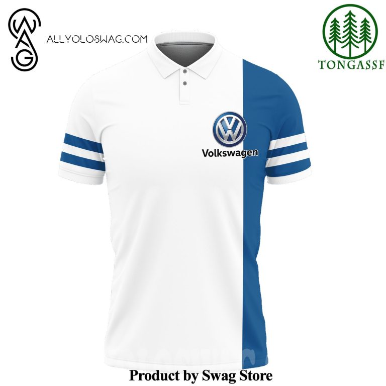 [Top-selling] Volkswagen Logo Line Sleeve In White Blue Unisex Polo Shirt