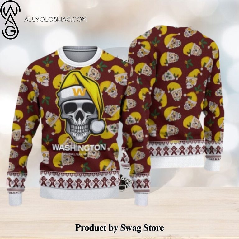NOTE: [Top-selling] Washington Football Team Christmas Skull Pattern Pattern 3D Sweater Christmas Gift