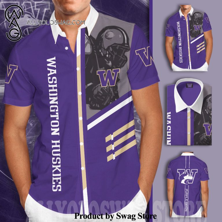 Some details about our product [Top-selling] Washington Huskies Purple Reign All Over Print Short Sleeve Dress Shirt Hawaiian Summer Aloha Beach Shirt – Purple