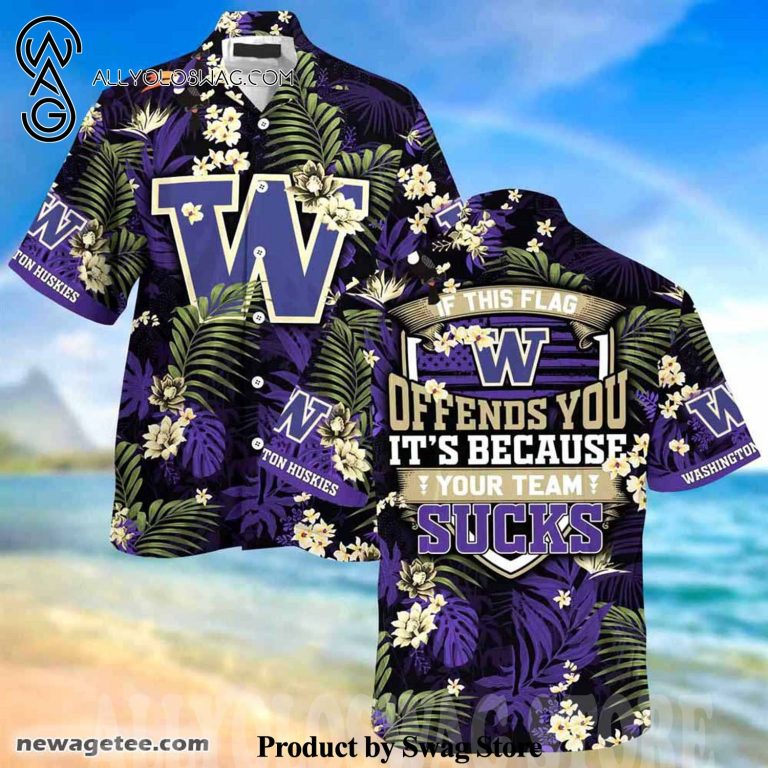 [Top-selling] Washington Huskies Summer With Tropical Patterns For Fans High Fashion Hawaiian Shirt was hand-tailored in the early days of fashion. This might happen in the comfort of one’s own home or at a custom tailor’s business. These stores immediately sprang up all across the islands, especially in plantation towns and Honolulu. Newly accessible fabrics from throughout the world were sold at dry goods stores, including printed silk from Japan, raw silk, batik, and rayon from the United States mainland, and cotton cloth for kimonos and yukatas.Hawaiian history had long been shaped by Asian immigrants, and apparel designs reflected this. Short- and long-sleeved shirts, as well as women’s skirts, were created using pre-printed textiles from China and Japan and were based on Asian clothing styles. These bright blouses and dresses were the forerunners of today’s Aloha attire. On the islands, we say “ono” to describe something that is pleasantly cool.