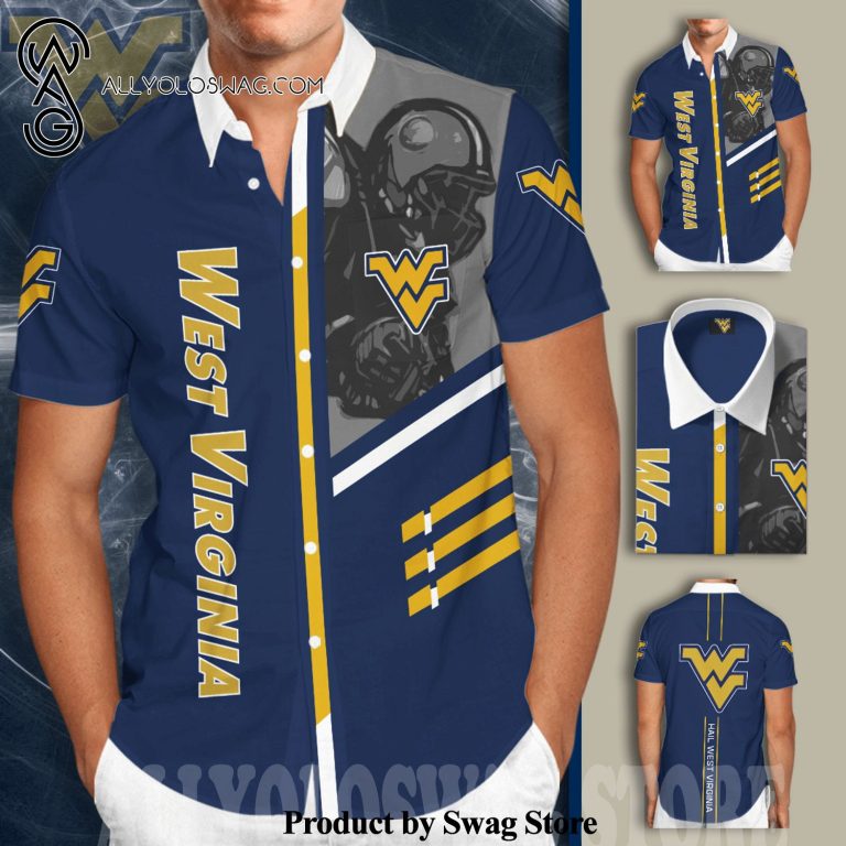 Some details about our product [Top-selling] West Virginia Mountaineers Hail West Virginia All Over Print Short Sleeve Dress Shirt Hawaiian Summer Aloha Beach Shirt – Navy