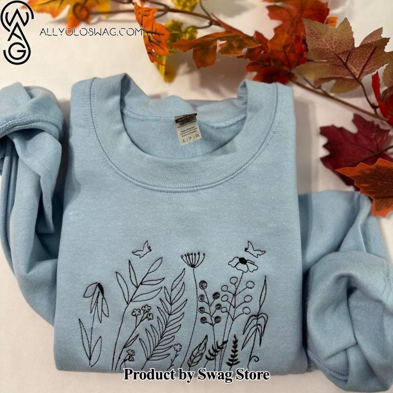 [Top-selling] Wildflowers Embroidered sweatshirt, Butterfly with wild flowers Embroidered