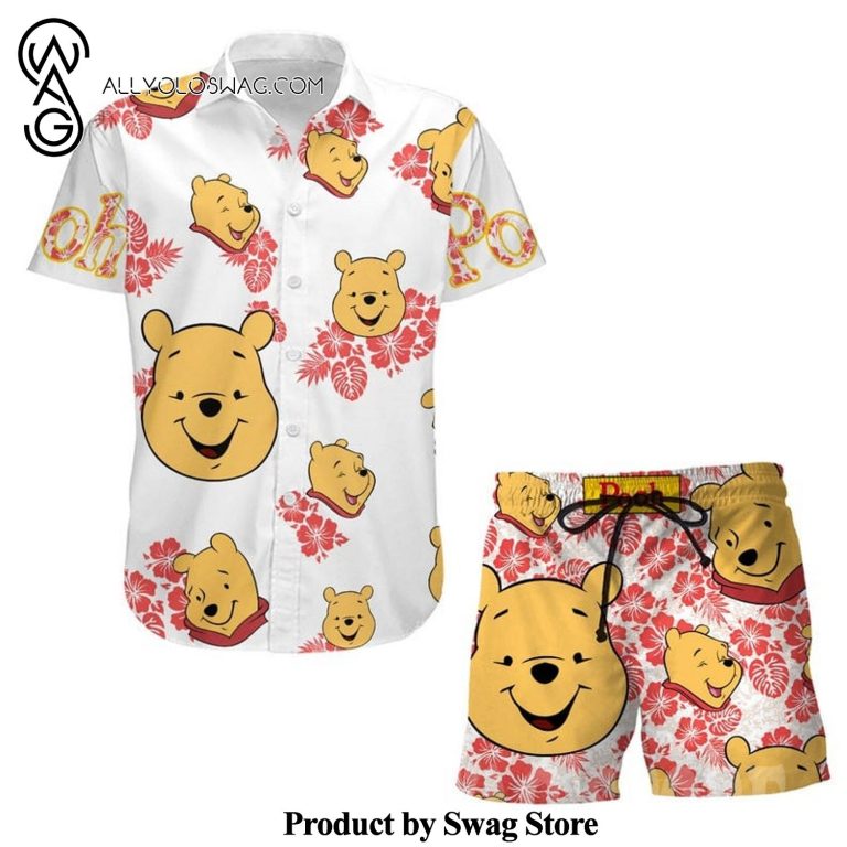 Some details about our product [Top-selling] Winnie The Pooh Head Hibiscus Disney Cartoon Graphics All Over Print Combo Hawaiian Shirt And Beach Shorts – White