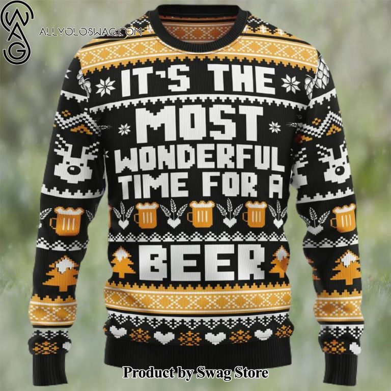 NOTE: [Top-selling] Wonderful Time For A Beer Ugly Christmas Sweater Xmas Sweatshirt