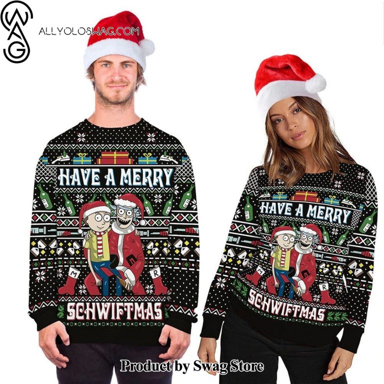 NOTE: [Top-selling] Woolen Rick And Morty Merry Schwiftmas Woolen Christmas Sweater