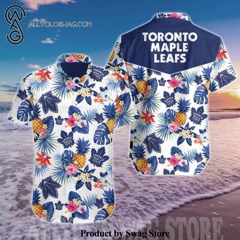 Toronto Maple Leafs For Vacation Hawaiian Shirt was hand-tailored in the early days of fashion. This might happen in the comfort of one’s own home or at a custom tailor’s business. These stores immediately sprang up all across the islands, especially in plantation towns and Honolulu. Newly accessible fabrics from throughout the world were sold at dry goods stores, including printed silk from Japan, raw silk, batik, and rayon from the United States mainland, and cotton cloth for kimonos and yukatas.Hawaiian history had long been shaped by Asian immigrants, and apparel designs reflected this. Short- and long-sleeved shirts, as well as women’s skirts, were created using pre-printed textiles from China and Japan and were based on Asian clothing styles. These bright blouses and dresses were the forerunners of today’s Aloha attire. On the islands, we say “ono” to describe something that is pleasantly cool.